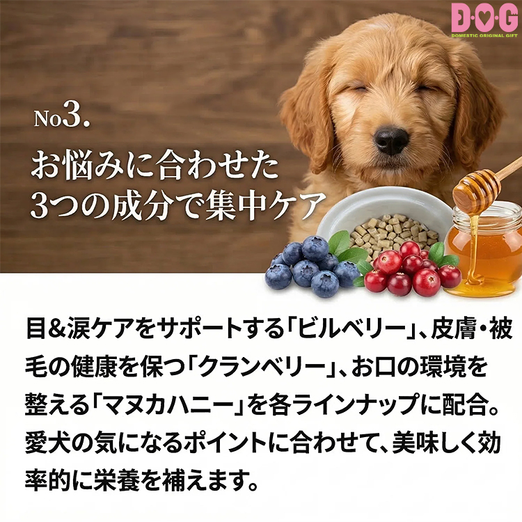 愛犬の気になるポイントに合わせて、美味しく効率的に栄養を補えます。