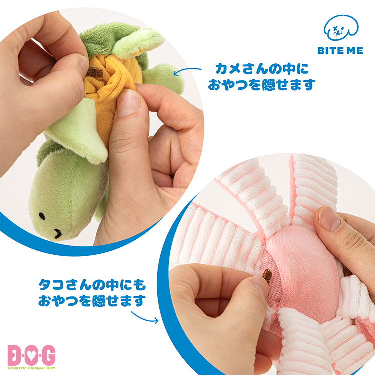 カメさんとタコさんの中にはおやつを隠せる仕掛け付き!