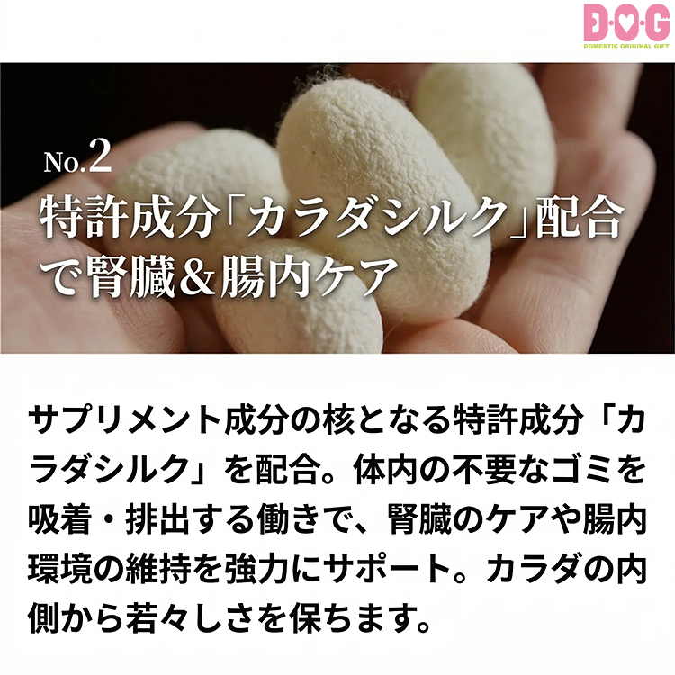 2. 特許成分「カラダシルク」配合で腎臓&腸内ケア
