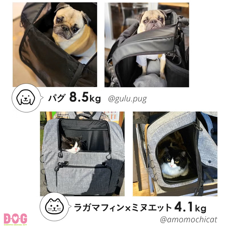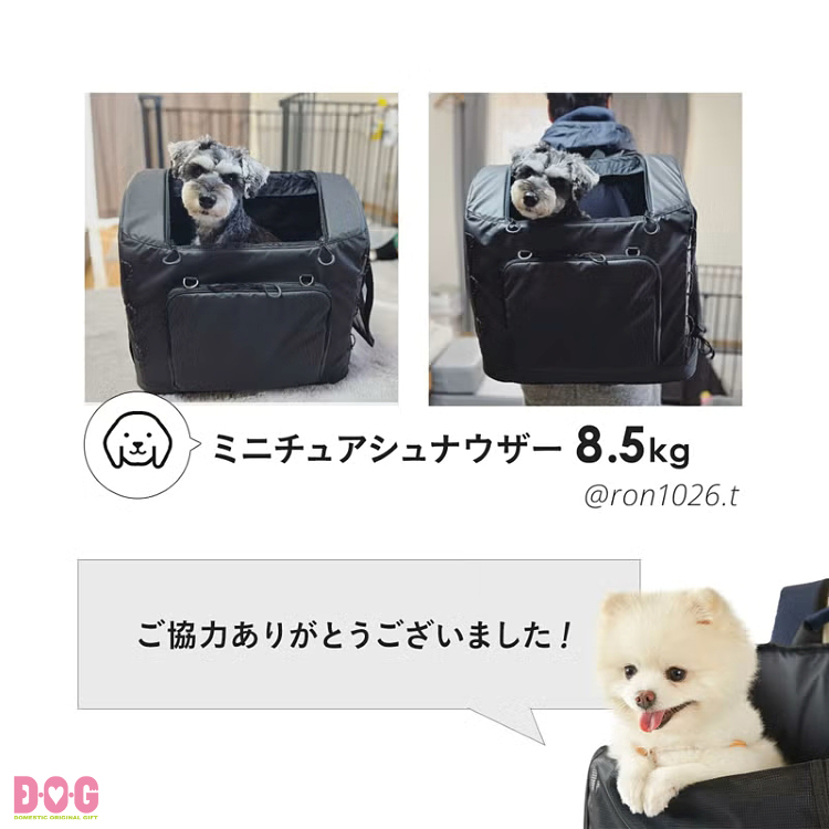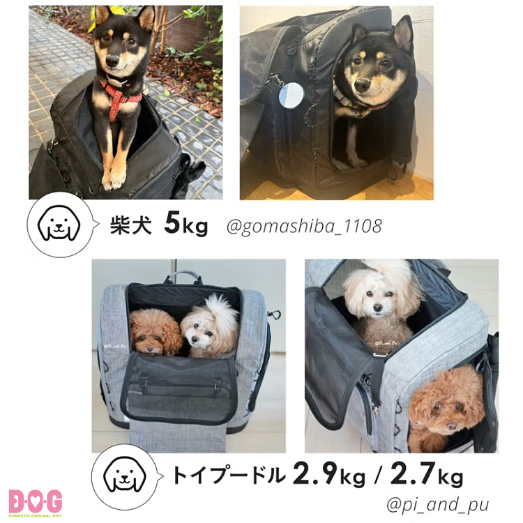 ミニチュアダックスフンド、チワワ、トイプードル、ミニチュアシュナウザー、パグ、シーズー、ペキニーズ、フレンチブルドッグ、柴等の適応体重以内の小型〜中型犬種。または猫やうさぎ